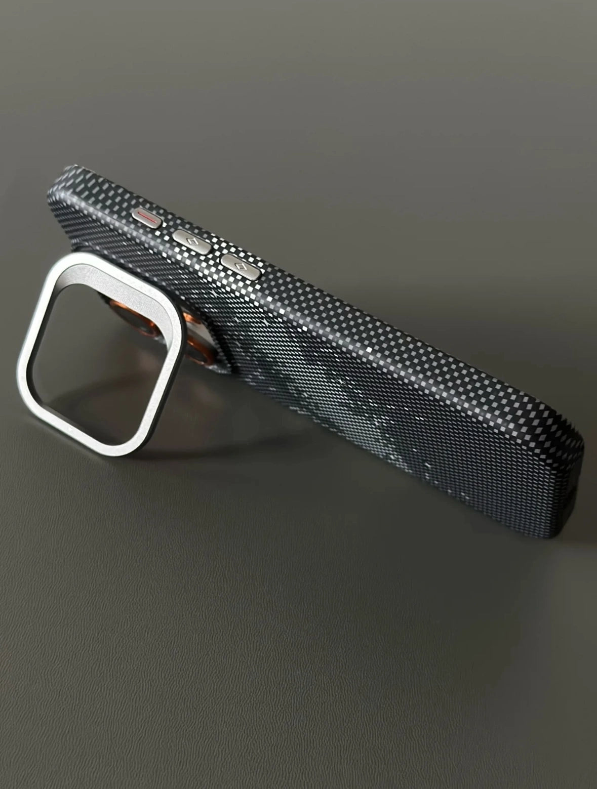 Highlights the precise alignment of the phone case with the phone, ensuring seamless protection and usability.